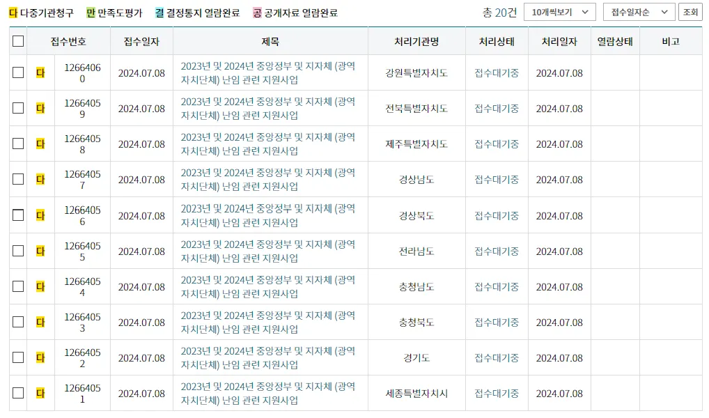 - 접 수 일: 2024. 7. 8.(처리기한: 2024. 7. 19.)