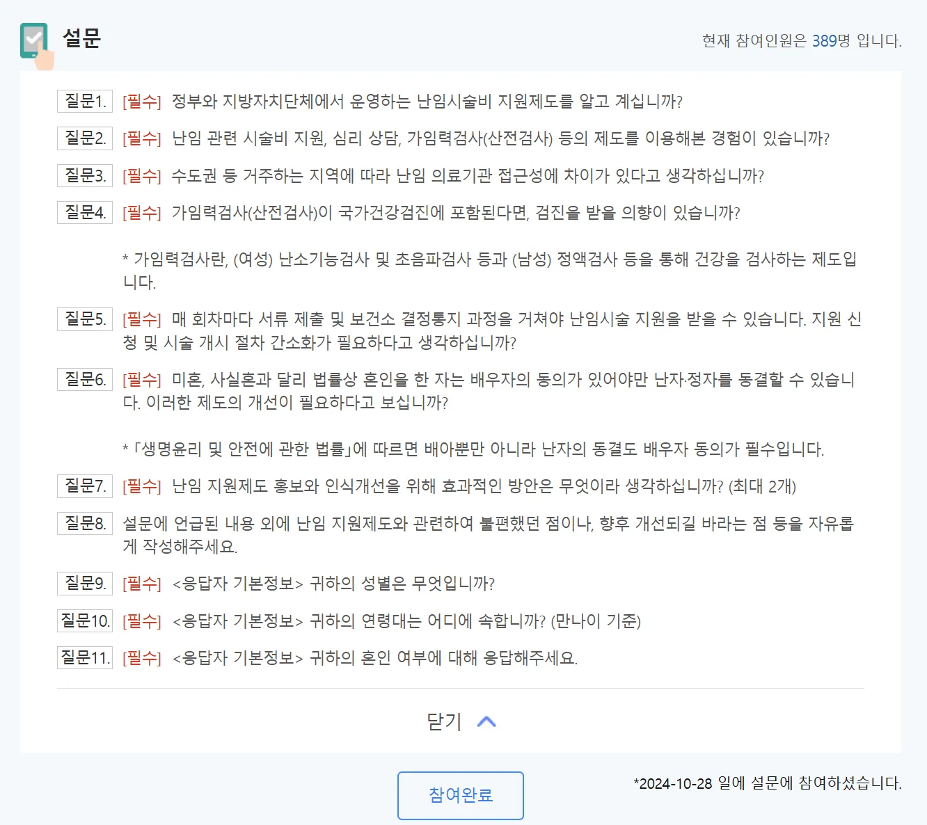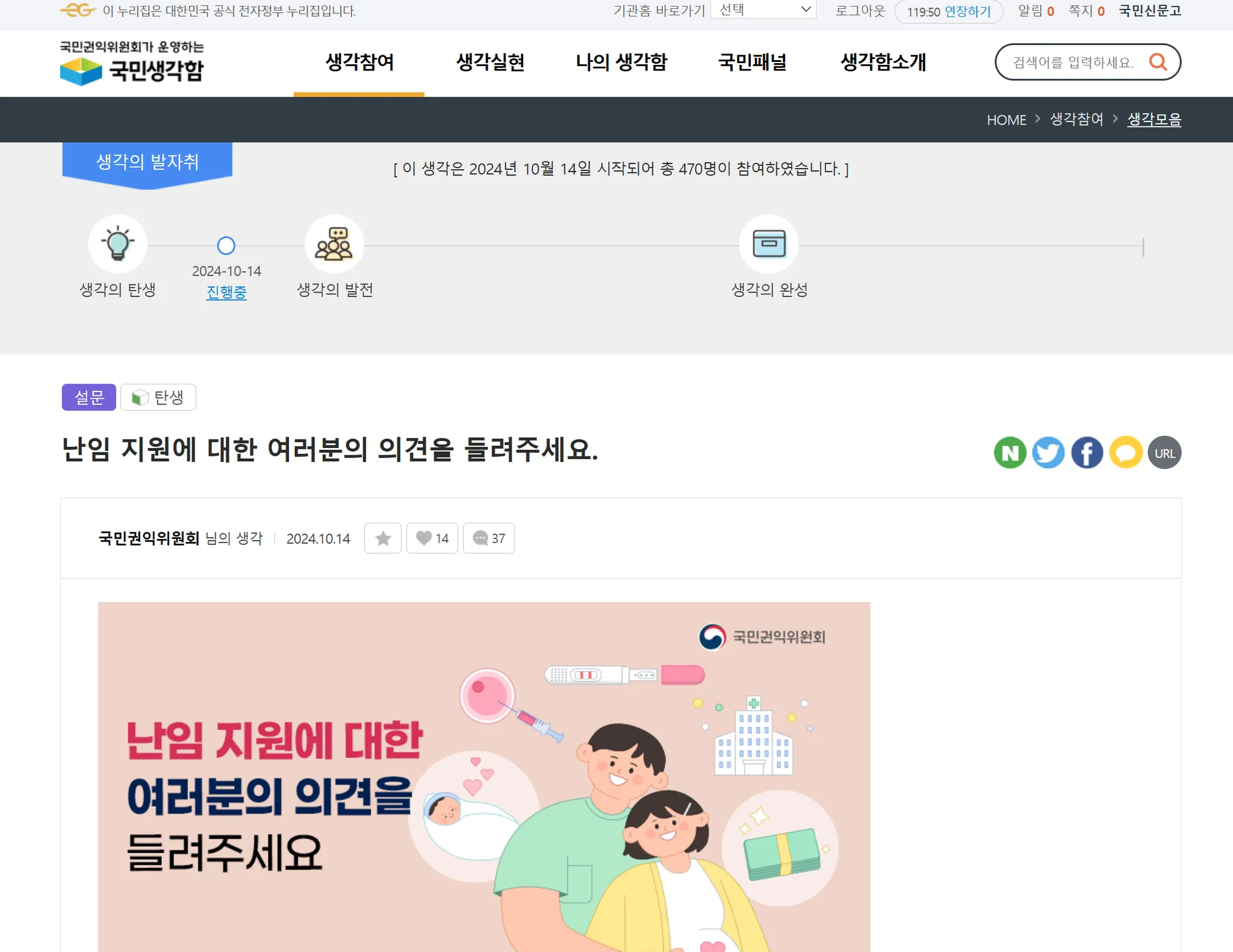 [국민권익위원회 님의 생각2024.10.14] 난임 지원에 대한 여러분의 의견을 들려주세요