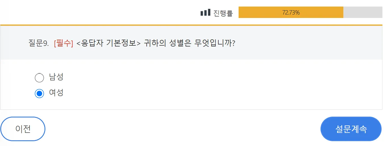 질문9.[필수] <응답자 기본정보> 귀하의 성별은 무엇입니까?
