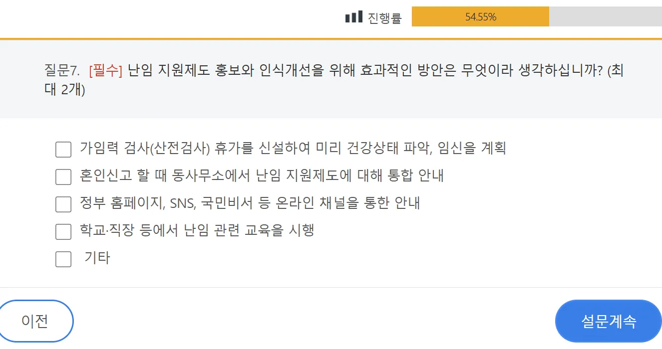 질문7.[필수] 난임 지원제도 홍보와 인식개선을 위해 효과적인 방안은 무엇이라 생각하십니까? (최대 2개)