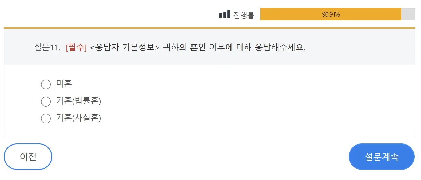 질문11.[필수] <응답자 기본정보> 귀하의 혼인 여부에 대해 응답해주세요.