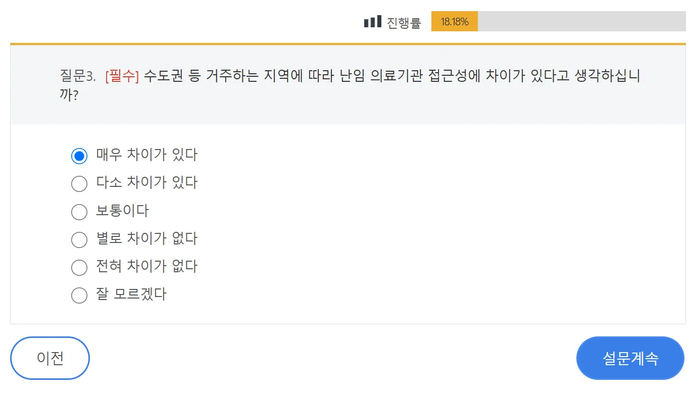 질문3.[필수] 수도권 등 거주하는 지역에 따라 난임 의료기관 접근성에 차이가 있다고 생각하십니까?